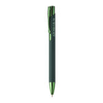 Kuličkové pero z recyklovaného hliníku s pogumovaným tělem a barevnými lesklými kovovými díly. Se speciálním povrchem pro zrcadlové gravírování, které odpovídá kovovým částem. S modrou náplní.