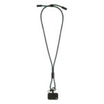 Náramek z RPET s držákem na mobil, vložkou pro telefon, karabinou a integrovaným nabíjecím kabelem USB-C/USB-C se skrytými konektory. Podporuje rychlé nabíjení a přenos dat PD s výkonem 60 W.