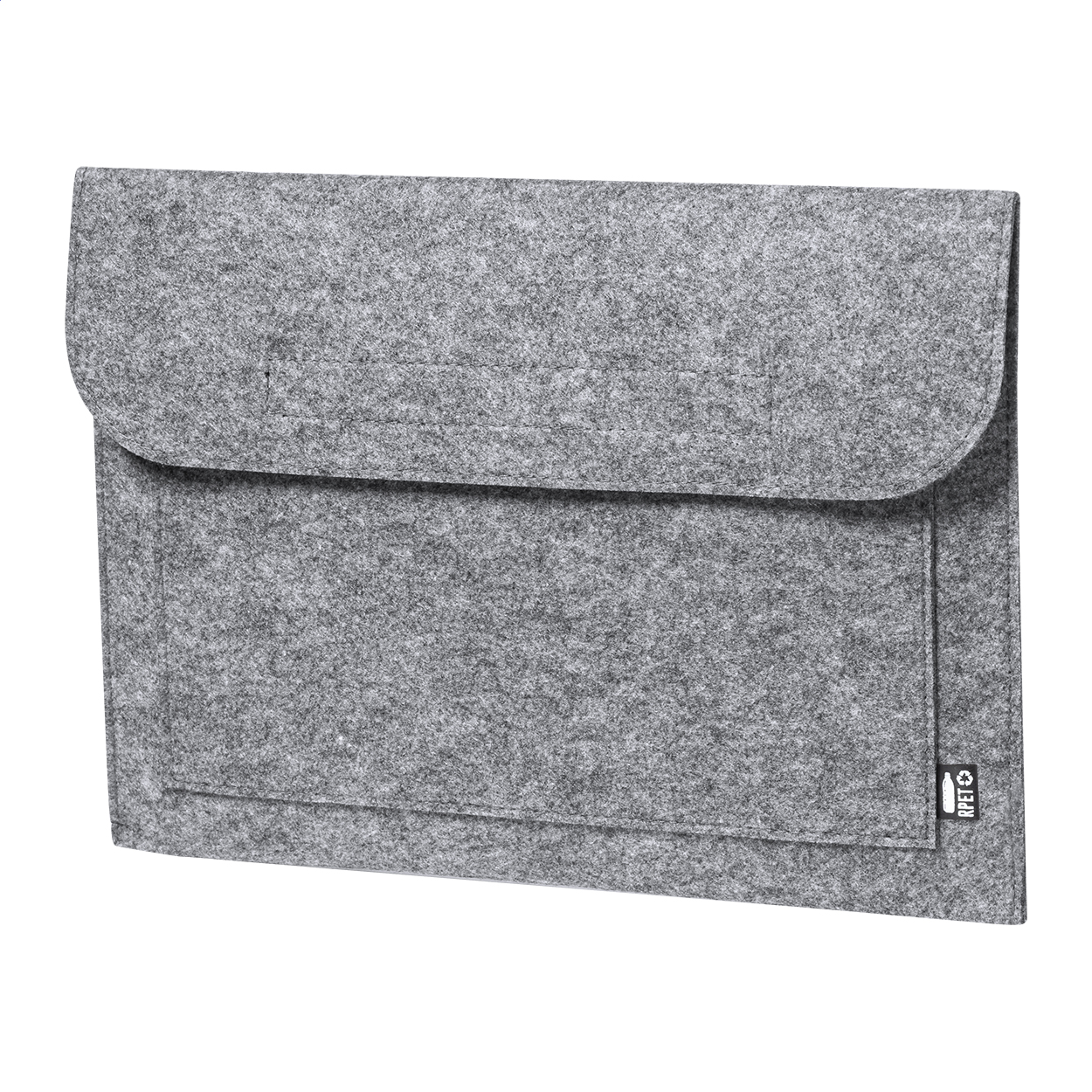 Pouzdro z RPET plsti na laptop s přední kapsou a zapínáním na suchý zip. S výrazným štítkem RPET.