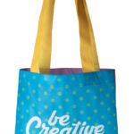 Polaminovaná nákupní taška z netkané textilie v metalické barvě, se středně dlouhými uchy.