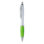 Kuličkové pero z recyklovaného ABS plastu s bambusovým tlačítkem a kovovým klipem. S modrou náplní.