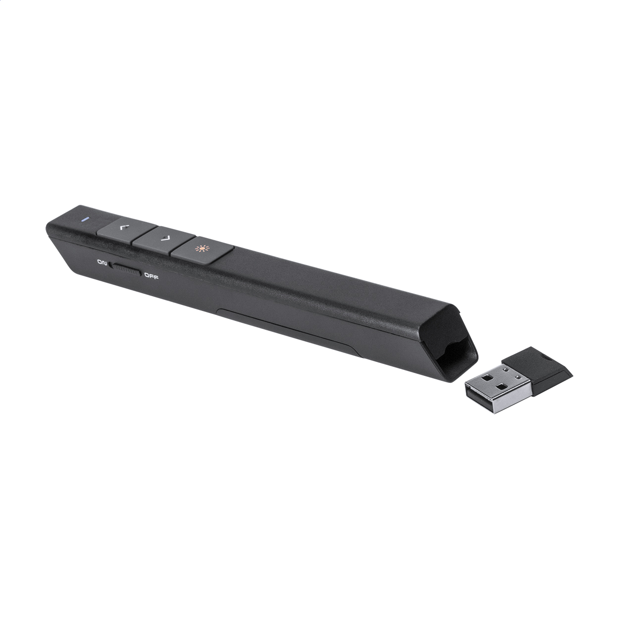 Plastové laserové ukazovátko s LED světlem a funkcí pro prezentace. V dárkové papírové krabičce, vč. 1 AAA baterie.