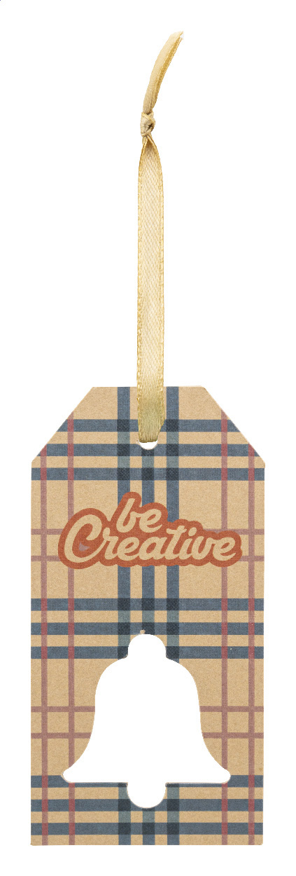 Vánoční dárková visačka z kraftového papíru s barevným potiskem, vyřezávaným vánočním motivem a zlatou stuhou. Cena zahrnuje digitální tisk na jedné straně, cena nezahrnuje tiskovou přípravu. Min. mn.: 100 ks.