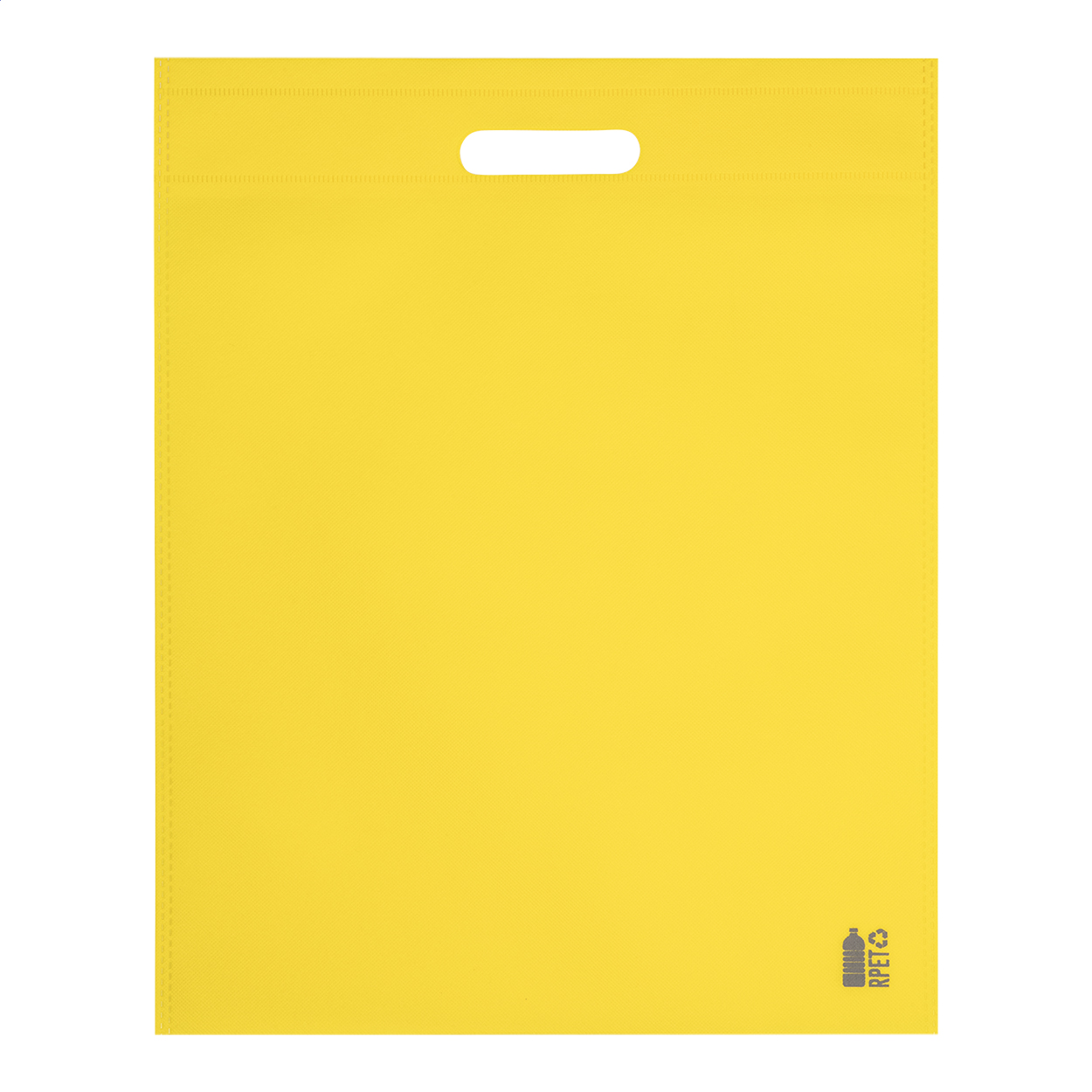 Nákupní taška z netkané textilie RPET s vysekávanými uchy, 70 g/m². S výrazným znakem RPET.