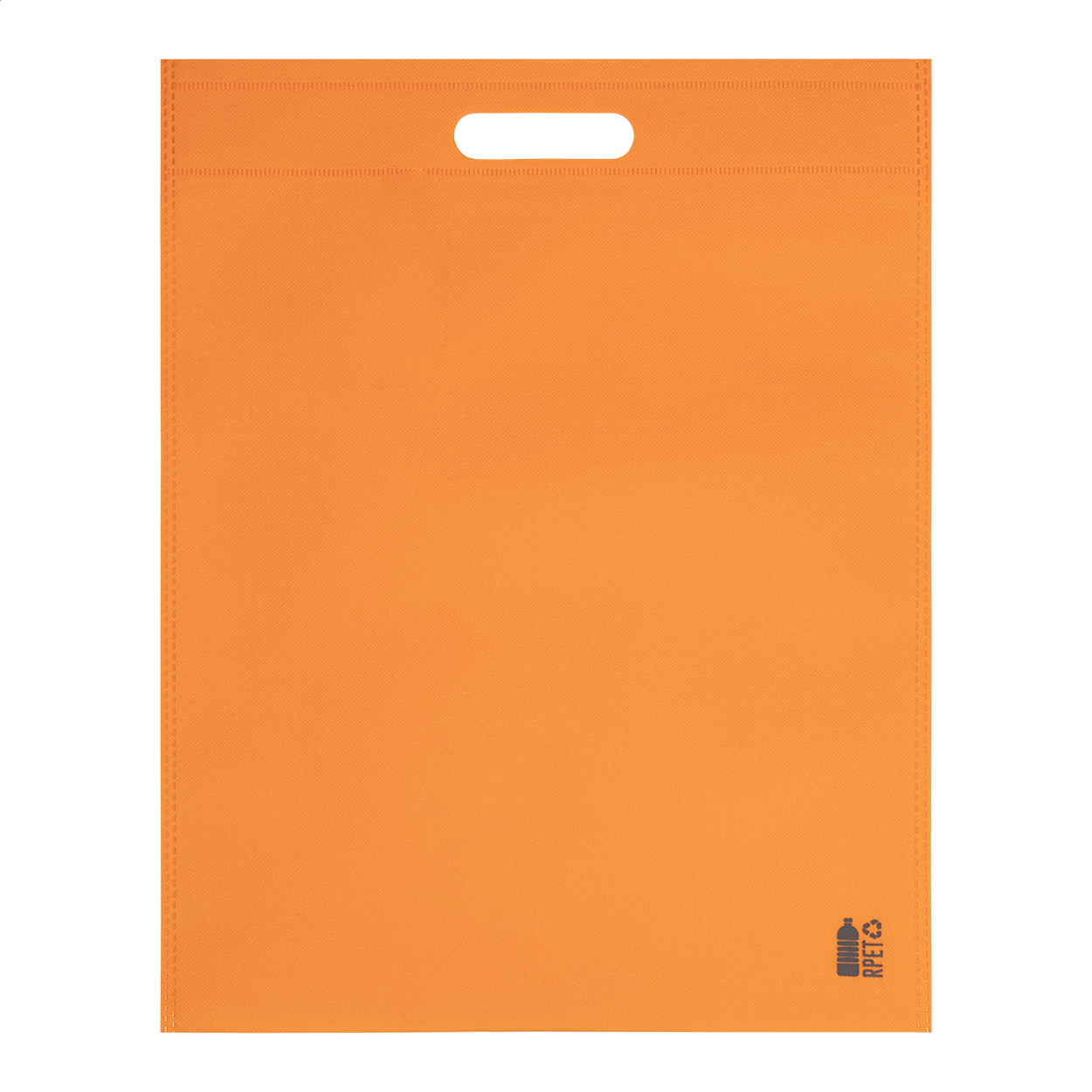 Nákupní taška z netkané textilie RPET s vysekávanými uchy, 70 g/m². S výrazným znakem RPET.