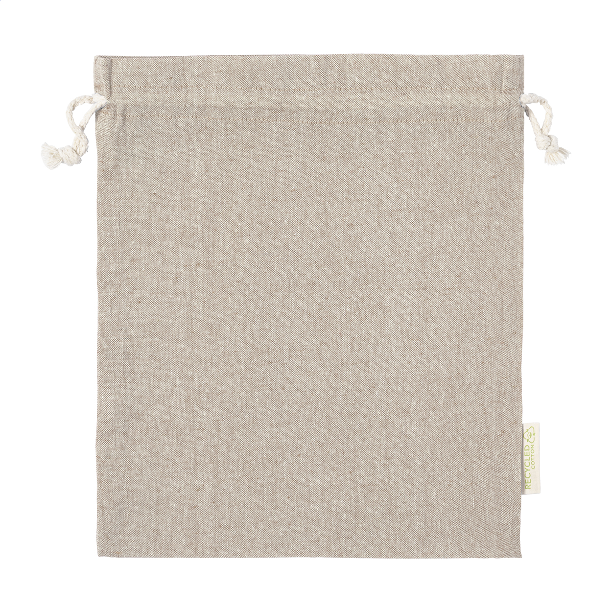 Opakovaně použitelný pytlík na potraviny z recyklované bavlny se stahování na šňůrku. 100% recyklovaná bavlna, 120 g/m².