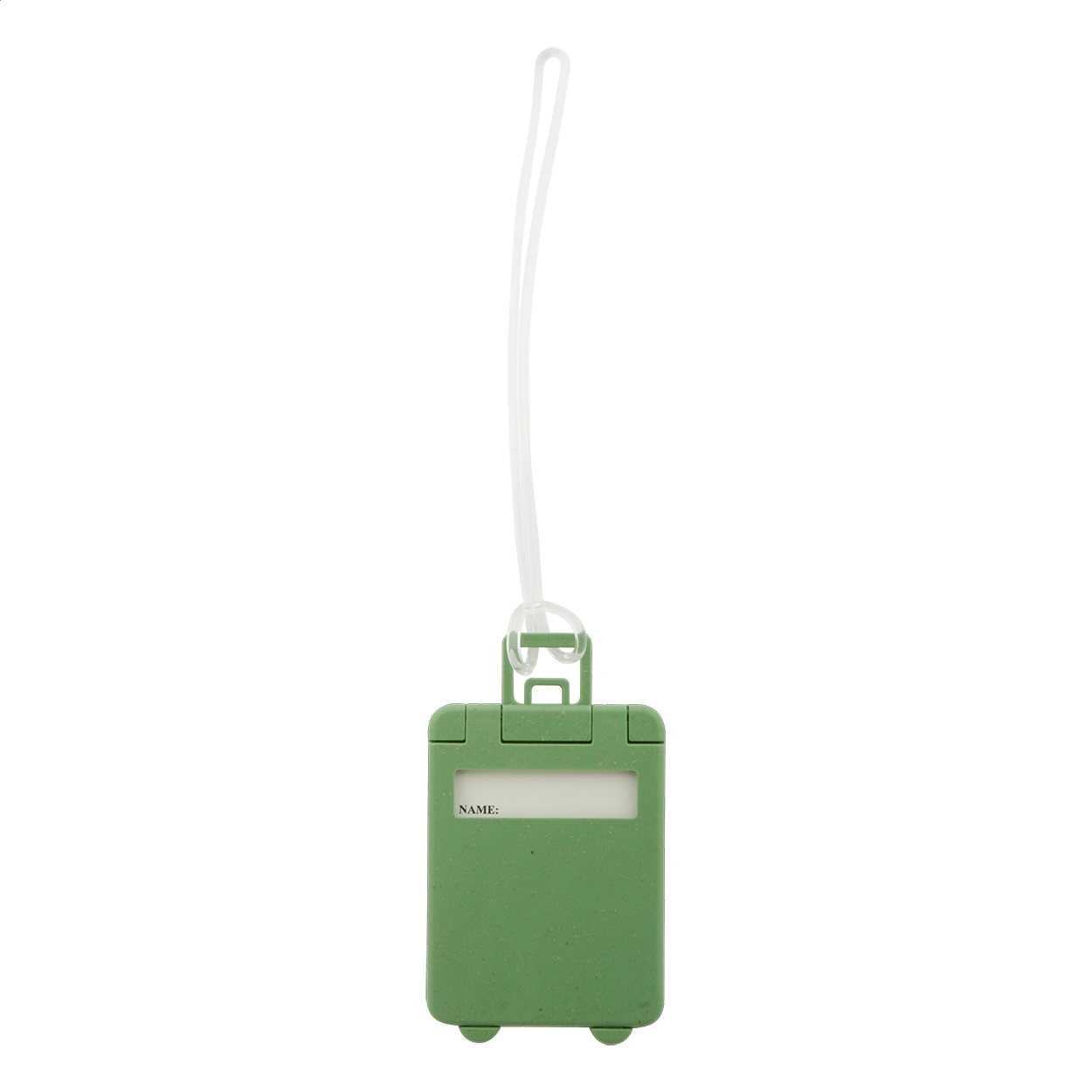 Ekologická plastová visačka na zavazadla z pšeničné slámy ve tvaru kufru, s elastickým páskem.
