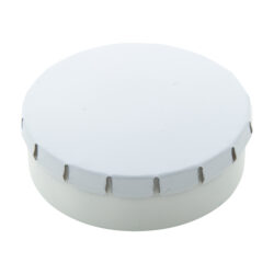 Kulatá průhledná plastová dóza s mintovými bonbóny s barevným šroubovacím víčkem. Obsahující cca. 12 gramů mentolových bonbonů bez cukru.